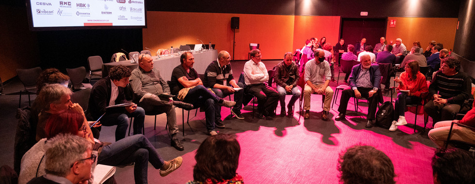 Tot seguit, es van dividir els assistents en dos grups per poder parlar de les dificultats/encerts i discutir de les diferents opcions/solucions que han trobat o que busquen a la problemàtica del soroll de les terrasses a la via pública.