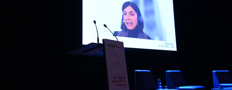 Dra. Eulàlia Peris, en una connexió amb Copenhage des de l’Agència Europea del Medi Ambient, ha obert el Congrés amb una ponència magistral sobre “Les polítiques de gestió de la contaminació acústica a nivell europeu”.
