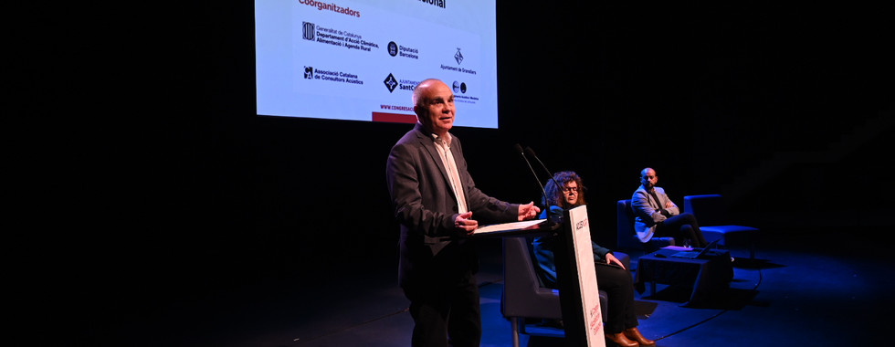 Per la seva banda, des de la Diputació de Barcelona, es disposa d’una oficina tècnica dins de l’Àrea d’Acció Climàtica que acompanya els municipis en la gestió del soroll i ho fa amb una estreta col·laboració entre administracions que té el millor exemple amb la celebració de l’ACUSTICAT. En la seva intervenció, el Sr. Xesco Gomar, Diputat President Delegat de l’Àrea d’Acció Climàtica de la Diputació de Barcelona i de la Xarxa de Ciutats i Pobles cap a la Sostenibilitat, ha volgut remarcar com la contaminació acústica és una d’aquelles “amenaces invisibles”, un d’aquells impactes als quals els ciutadans ens acostumem, però que perjudiquen la nostra salut, la dels nostres familiars i conciutadans. “Una qüestió que ens preocupa molt des de la Diputació de Barcelona. Fa molts anys que disposem d’un Laboratori de Medi Ambient i d’una Oficina Tècnica especialitzada en prevenció, vigilància i gestió del soroll, que presta als ajuntaments suport tècnic i econòmic i els acompanya en la gestió municipal dins de la contaminació acústica amb l’elaboració de mapes de soroll i de capacitat acústica, plans d’acció, l’avaluació dels nivells de soroll i l’adequació acústica de locals” i acaba reblant “Sobren relats i falten més inversions de l’administració”.